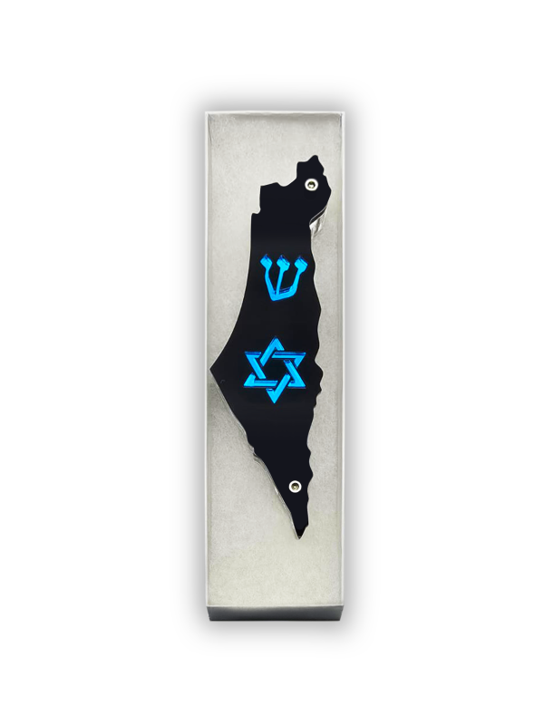 • 🎨 Artistic Design: An outline  map of Israel embellished with mezuzah imagery.