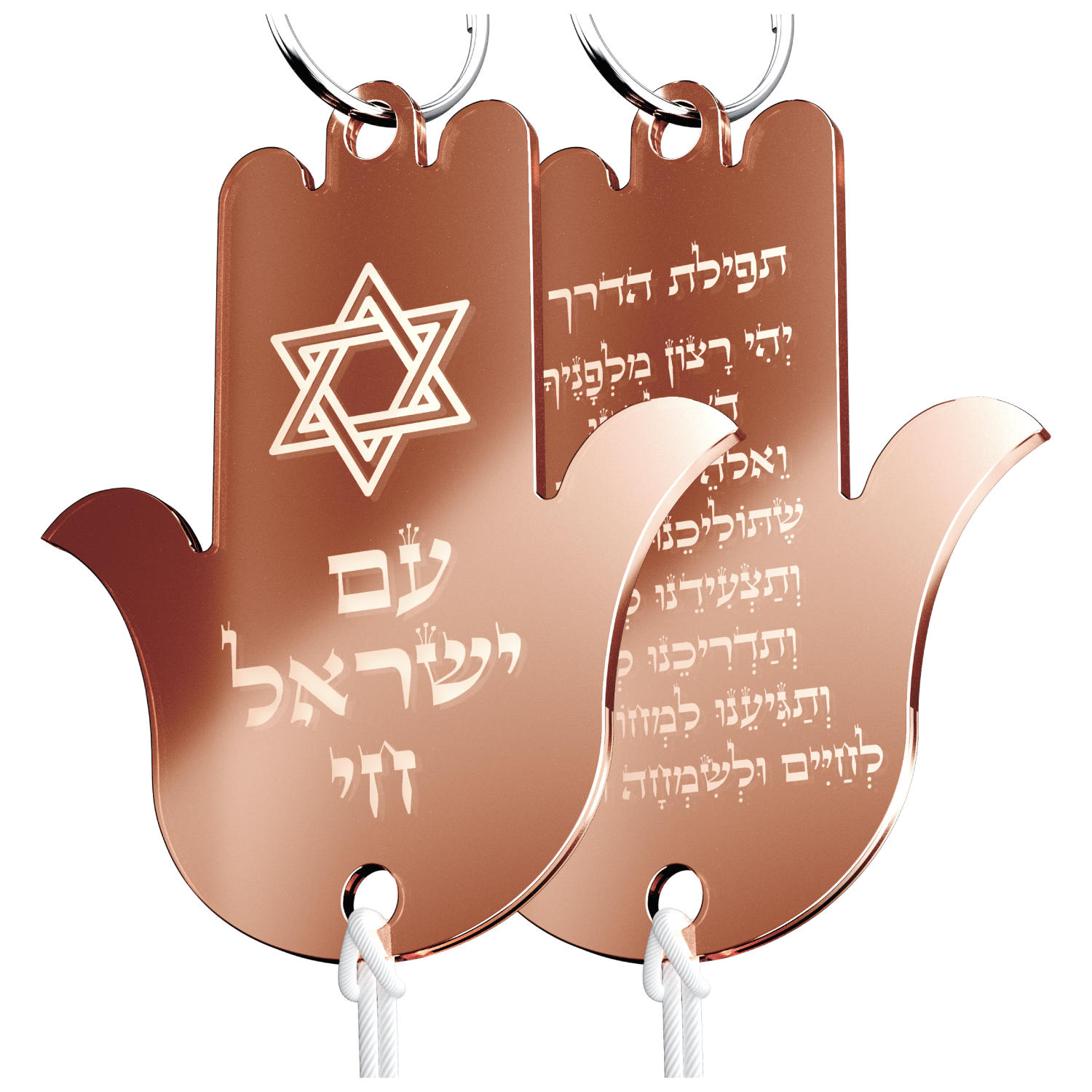 Home » Shop » TYLDUM Judaica Gifts for Car Hamsa Travelers Prayer Blessing Am Israel Chai, Car Mezuzah ( Gold Rose)